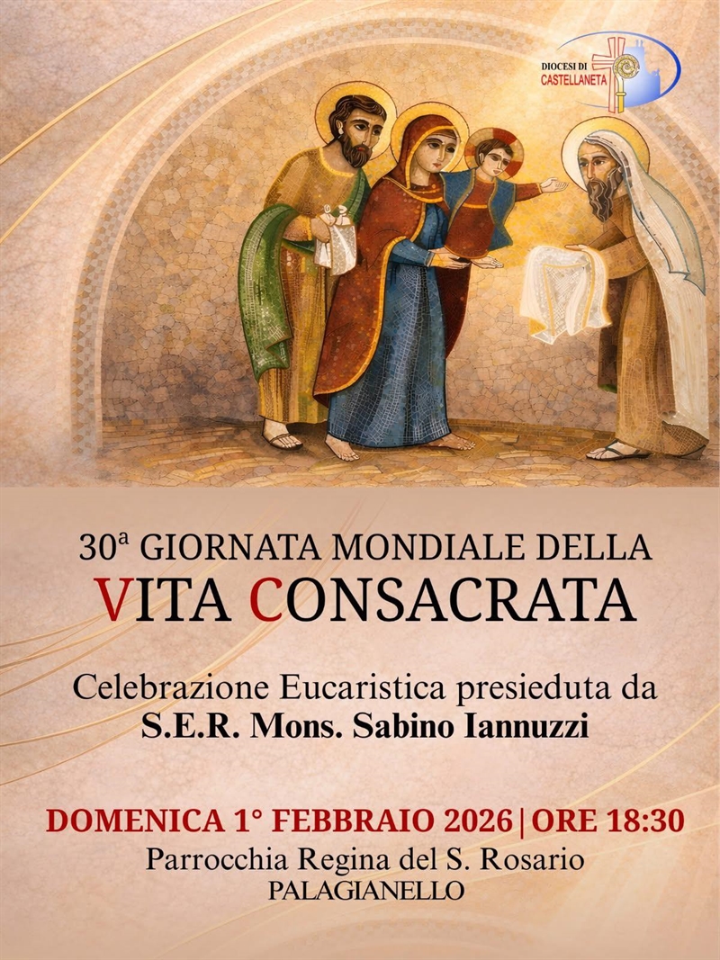 Domenica 1 febbraio alle 18:30, la parrocchia Regina del Santo Rosario di Palagianello onorerà la trentesima giornata mondiale della vita consacrata.