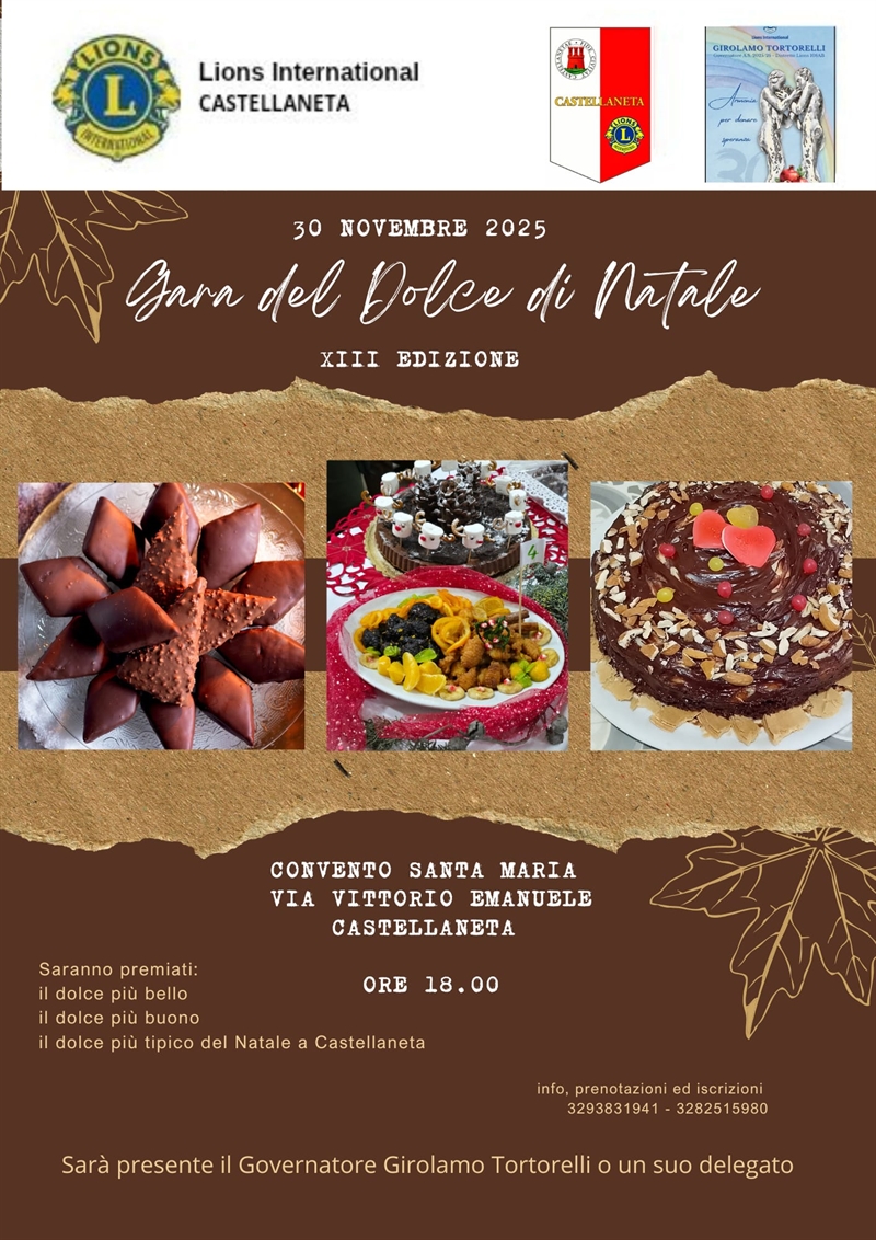 L'evento si svolgerà nell'ex convento di Santa Maria, in corso Vittorio Emanuele, a partire dalle 18. È organizzato dal Lions Club di Castellaneta con la presenza del governatore Girolamo Tortorelli, o di un suo delegato.
