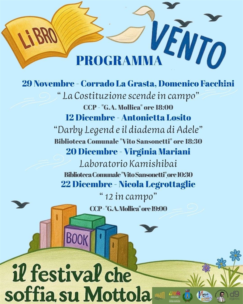 A Mottola, il 29 novembre, nel Centro culturale protestante Mollica, prende il via LibroVento, il festival ideato da un gruppo di studentesse dell’istituto comprensivo Manzoni – San Giovanni Bosco per promuovere tra gli adolescenti una lettura libera e curiosa, con incontri e laboratori che animeranno la città fino al 22 dicembre.