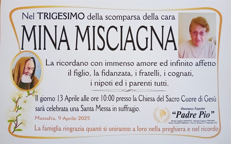 Pubblica una frase per ricordare Mina Misciagna ed esprimi vicinanza alla sua famiglia e ai suoi cari.