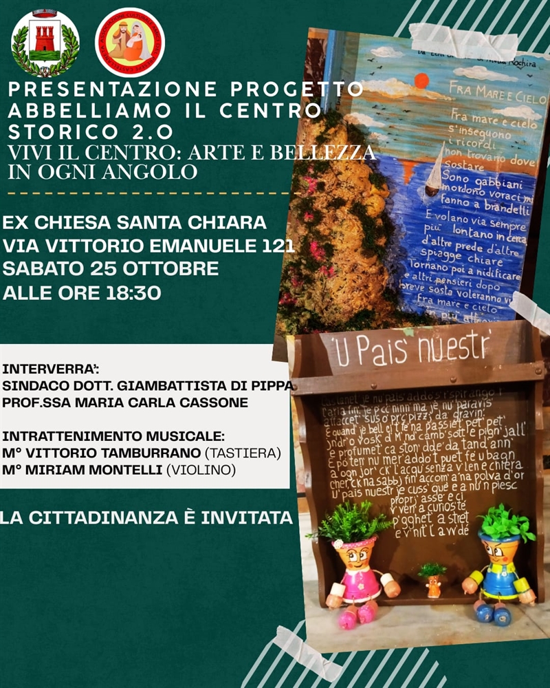 Sarà presentato oggi pomeriggio, alle 18:30 nella ex chiesa di Santa Chiara in via Vittorio Emanuele 121, il progetto «Abbelliamo il centro storico 2.0».