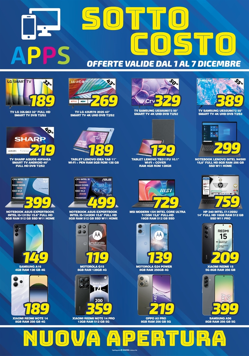 Apps di Alberto Putignano e Pietro Francavilla continuerà a offrire servizi di assistenza e riparazioni di computer fissi e mobili (anche Apple), tablet, smartphone, stampanti e tv. Sarà ancora centro autorizzato WindTre, Very Mobile, Iliad, Vodafone e Ho e proporrà in vendita smartphone, tablet, monitor, tv, stampanti, accessori smartphone, toner cartucce.