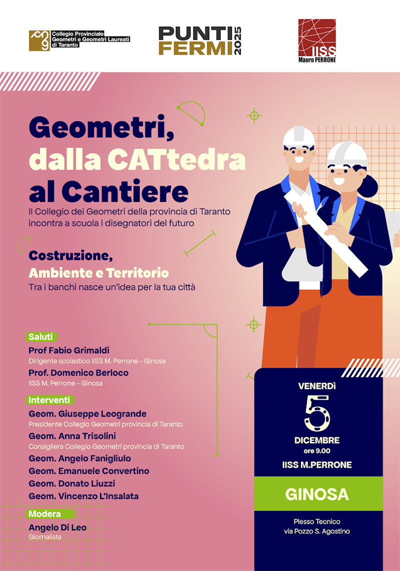 La serie di incontri con le scuole è promossa dal Collegio dei Geometri e dei Geometri laureati della provincia di Taranto.