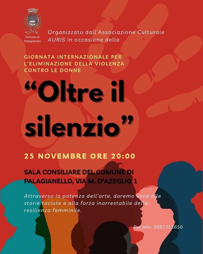 "Oltre il Silenzio" è l'evento in programma stasera, alle 20 nella sala consiliare del Comune di Palagianello, per onorare la Giornata internazionale per l’eliminazione della violenza contro le donne.